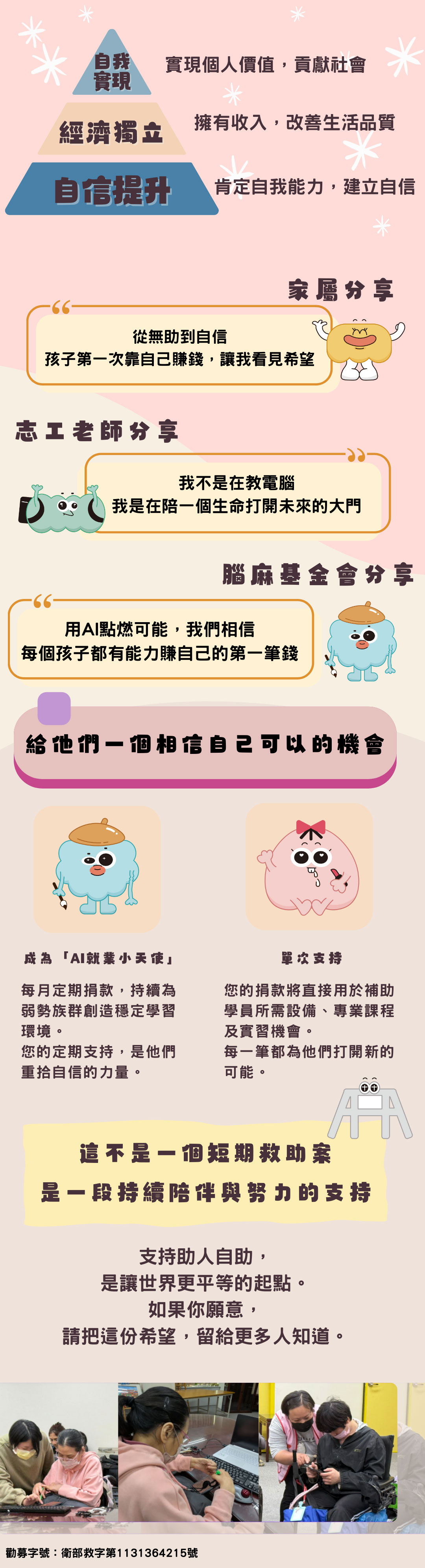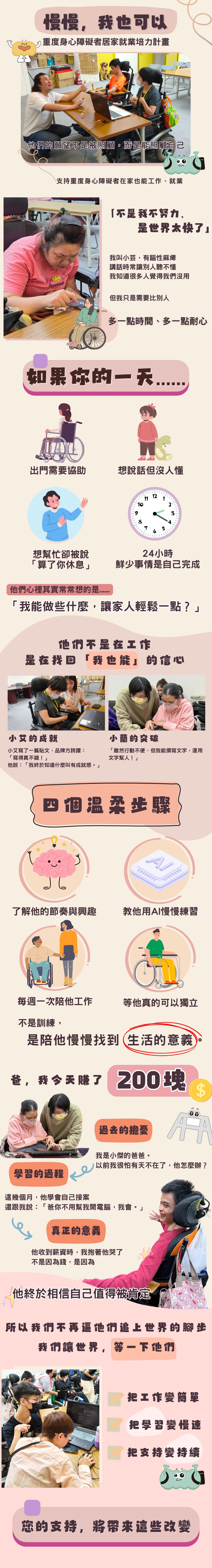 支持「慢慢,我也可以」計畫!透過AI課程,重度身心障礙者身心障礙者在家也能工作、就業。